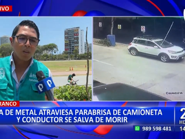 Barranco: Barra metálica cae de obra en construcción y atraviesa el parabrisas de vehículo