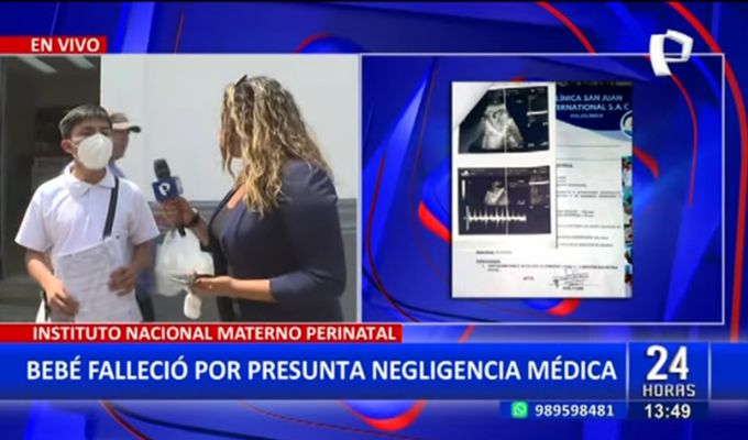 Desde los exteriores del Instituto Nacional Materno Perinatal - Maternidad de Lima, un joven padre primerizo, identificado como Alexander Torres, de 18 años, denuncia una presunta negligencia médica, luego que su bebé perdiera la vida en el nosocomio.