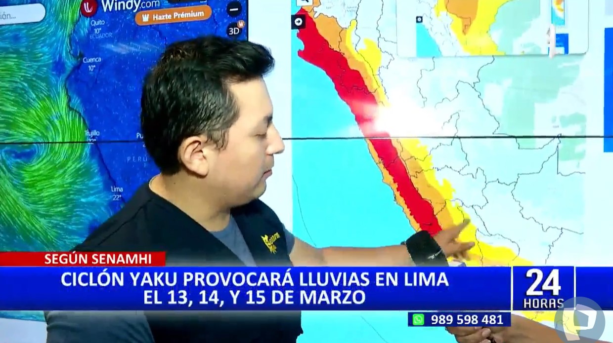 “Estamos viviendo las afectaciones de manera directa del ciclón Yaku, su movimiento ha sido del sur oeste, este flujo de aire va a facilitar las lluvias desde el 13 hasta el 16 de marzo con lluvias intensas quebradas”, afirmó el meteorólogo de dicha entidad, David Garay, quien indicó también que Lima no se encuentra preparada para este tipo de lluvias.