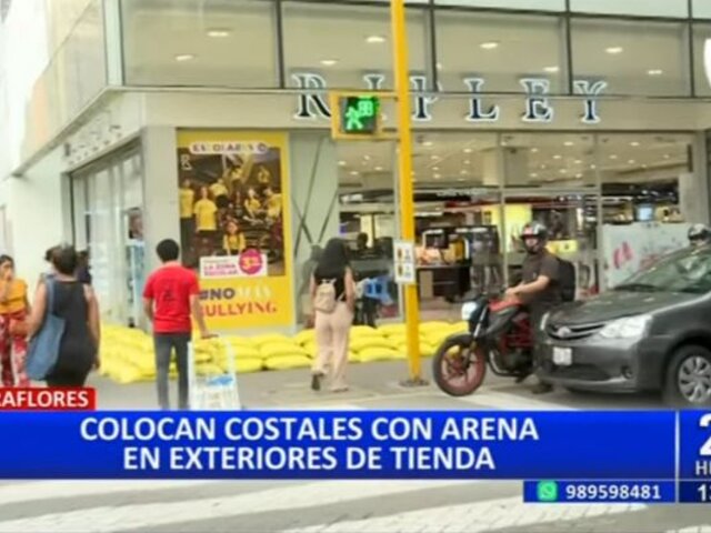Ante posibles lluvias: Colocan sacos de arena en conocida tienda por departamento en Miraflores