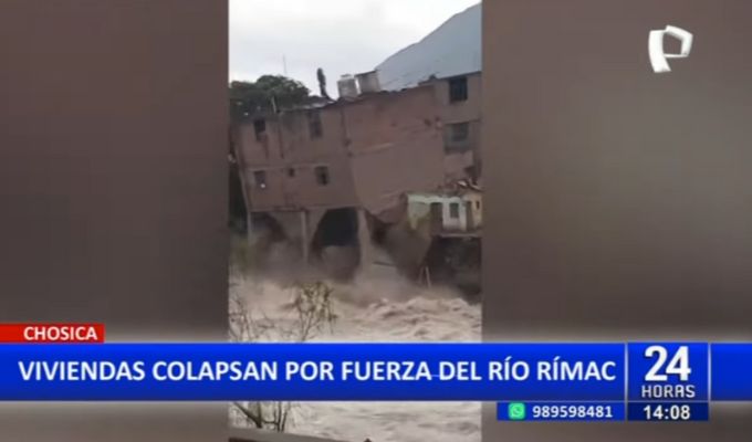 En la ciudad de Chosica, una vivienda no pudo soportar los embates de la naturaleza y terminó colapsando ante la fuerza del río Rímac, el cual ha aumentado considerablemente su caudal debido a las intensas precipitaciones.