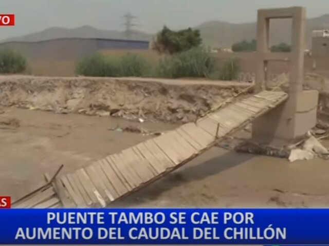 Como consecuencia de los huicos producidos en el distrito de Canta, tuvo como desenlace la creciente del caudal del dio Chillón ocasionado el colapso del puente Tambo Río dejando incomunicados a diversas zonas del distrito de Puente Piedra y distrito de Comas. Vecinos del lugar claman ayuda para que las autoridades tomen acciones inmediatas.
