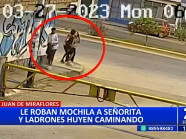 En el distrito de San Juan de Miraflores, una joven se convirtió en víctima de la inseguridad ciudadana, luego que dos delincuentes la interceptaran en un paradero para robarle su mochila y huir con rumbo desconocido.