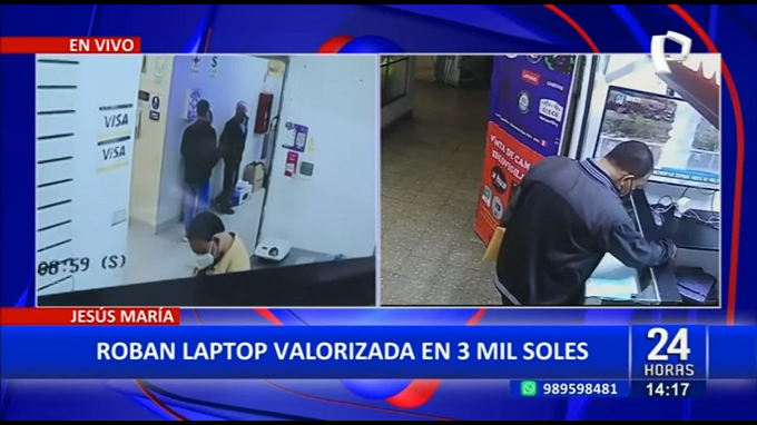Cámaras de videovigilancia de una conocida tienda de cómputo en Jesús María, captaron el preciso momento en el que un sujeto de mediana edad, se pasea por varias tiendas, para llevarse una laptop valorada en 3 mil soles.