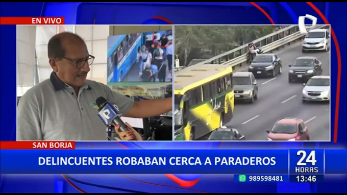 Las cámaras de video vigilancia de la central de monitoreo del distrito de San Borja, captaron el preciso momento en el que delincuentes aprovechan el tráfico para quitarle sus pertenencias a los pasajeros del transporte público.