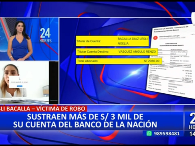 Una mujer identificada como Lesli Bacalla, denunció haber sido víctima del robo sistemático de su dinero, el cual lo guardaba en una cuenta de ahorros del Banco de la Nación.