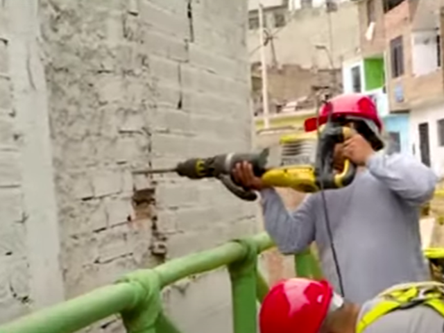 El municipio de El Agustino inició los trabajos de demolición de cinco viviendas, en el asentamiento humano 9 de Octubre, que se encuentran en riesgo de colapsar debido a la formación de un enorme socavón.