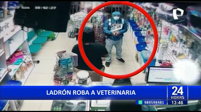 estas imágenes ya habrían sido entregadas a la comisaría del sector por lo que se espera que los efectivos de la policía nacional puedan lograr la identificación y captura de este delincuente que ingresó a la veterinaria encapuchado y con una mascarilla quirúrgica.