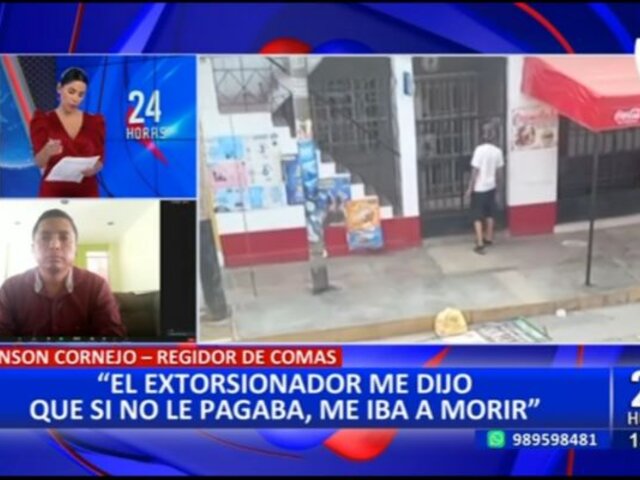 En entrevista para 24 Horas Edición Mediodía, el regidor de Comas indicó que viene siendo víctima de extorsiones desde hace un mes aproximadamente y le exigen el pago de 500 soles cada semana.