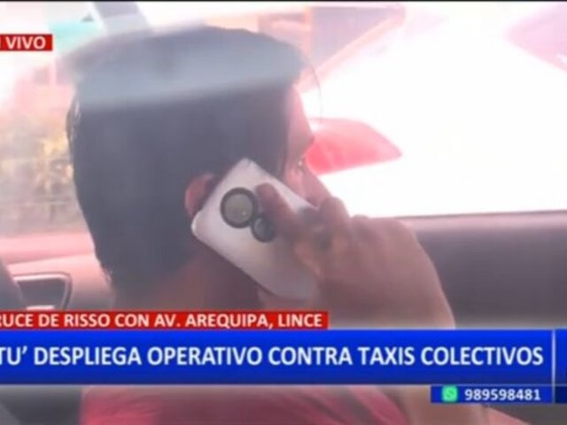 Personal de la Autoridad de Transporte Urbano para Lima y Callao (ATU) viene desplegando un operativo contra los taxis colectivos en los cruces del jirón Risso con la avenida Arequipa, en el distrito de lince.