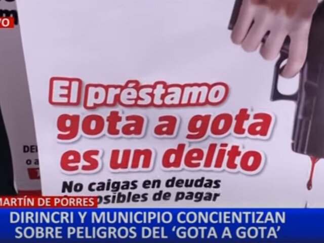 Agentes de la Dirección Nacional de Investigación Criminal de la Policía Nacional (Dirincri) en coordinación con el municipio de San Martín de Porres, realizaron una campaña de concientización sobre el peligro eminente que se corre al realizar los prestamos por aplicativo, mejor conocidos como “Gota a Gota”.