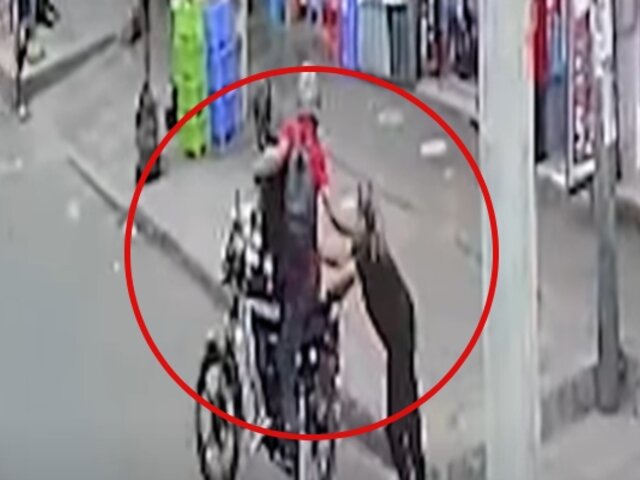 La delincuencia imparable en la capital. Una comerciante fue arrastrada por dos ladrones que huían a bordo de una motocicleta tras robarle su celular dentro de un local en el distrito de San Juan de Miraflores.