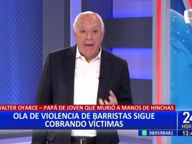 Walter Oyarce, el padre del joven que fue asesinado en septiembre del 2011 por unos barristas en el estadio Monumental, se refirió acerca de las barras bravas que en los últimos días causaron destrozos y atacaron a una mujer de la tercera edad, haciéndole perder la visión de uno de sus ojos.