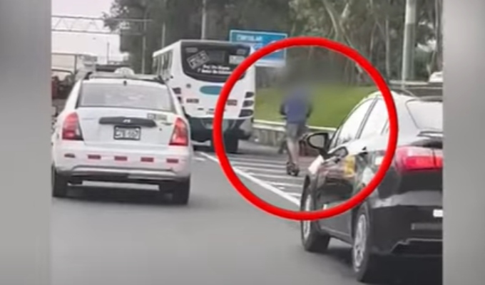 Sin temor alguno y pese a estar prohibido, un joven en scooter ingresó a una vía rápida, desatando el pánico de los demás choferes, quienes no tuvieron otra opción que abrirle paso al muchacho para evitar accidentes de tránsito en la Panamericana Sur.