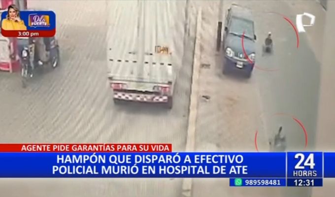 En tanto, el delincuente que disparó al efectivo policial por intentar robarle su celular, murió en el hospital de Ate.