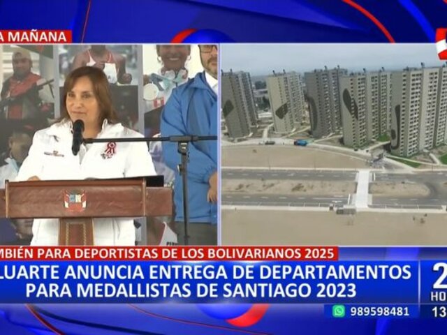 La presidenta de la República, Dina Boluarte Zegarra, anunció que el gobierno hará entrega de departamentos en la villa del distrito de Villa El Salvador a todos los deportistas que consigan medallas en los juegos Panamericanos de este año que se realizarán en Santiago de Chile.