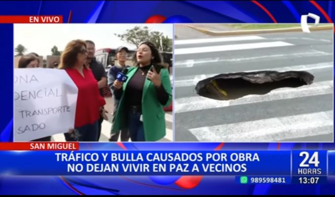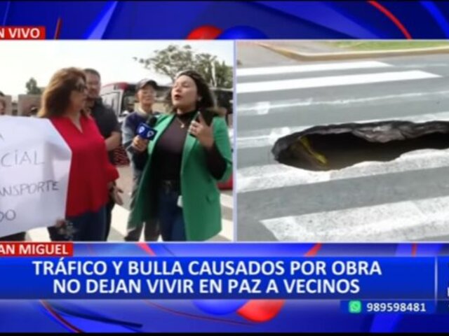 San Miguel: Vecinos denuncian caos vehicular y bulla por obras para tapar enorme forado en pista