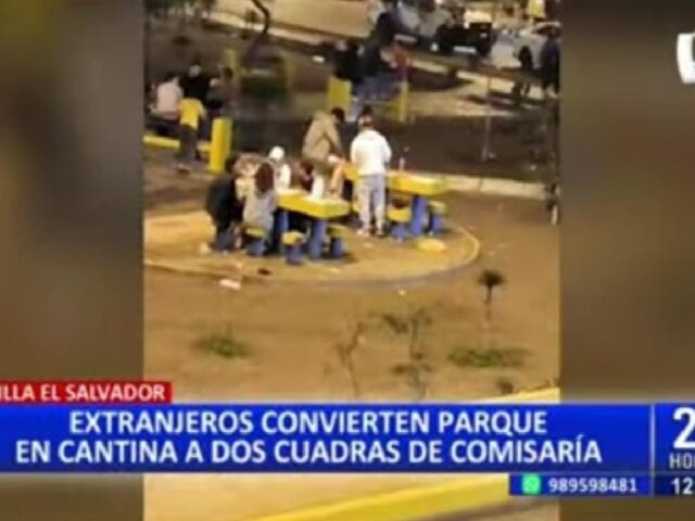 El parque Miguel Grau de Villa El Salvador que fue construido para ser un espacio recreacional para los vecinos de la avenida revolución se ha convertido en punto de encuentro de personas extranjeras que lo han convertido en una cantina al aire libre.