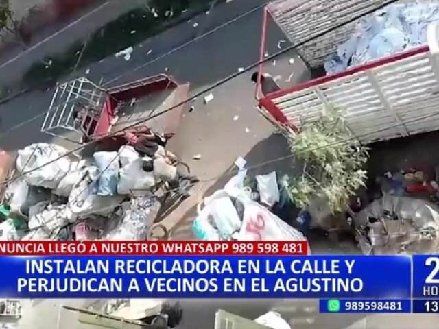 Vecinos del jirón Llamellín en la urbanización Santoyo, en el distrito de El Agustinodenunciaron que una recicladora que se instaló en la zona les genera incomodidad debido a que sus productos obstaculizan el libre tránsito y generan contaminación.