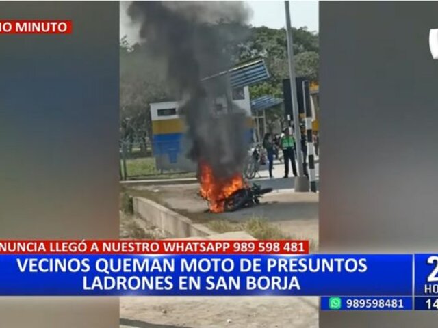 Cansados de la inseguridad ciudadana que impera en la capital, vecinos del distrito de San Borja quemaron la motocicleta de unos presuntos delincuentes que circulaban por los alrededores, quienes habrían estado en búsqueda de víctimas.