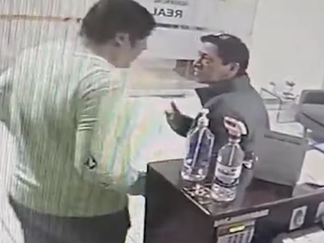 En las imágenes se observa cómo este hombre insulta al conserje de 64 años y luego lo coge del cuello para obligarlo a subir por el ascensor hasta llegar al departamento de su expareja, quien no se encontraba en su vivienda.