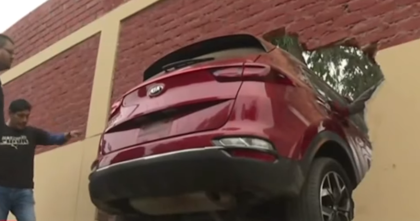 Una camioneta terminó empotrada en el muro de un colegio, en el distrito de Ate, luego de que la conductora, al parecer madre de familia de esta institución educativa, se confundiera y pisara el acelerador en lugar del freno.