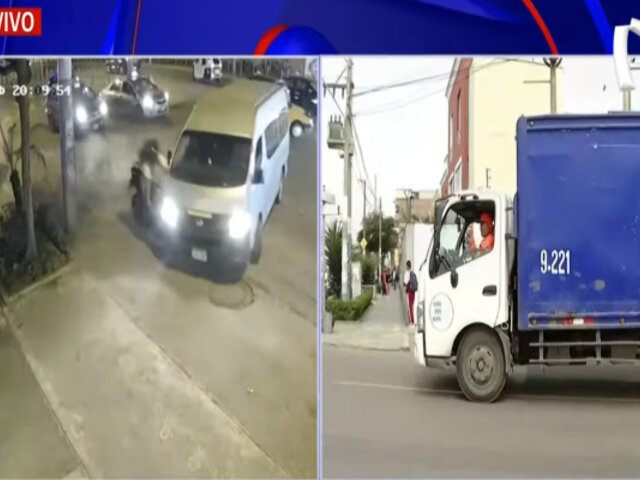 Las cámaras de seguridad de un condominio captaron el impacto entre un minibús y una mototaxi debido a que en la autopista no existe ningún tipo de señalización.