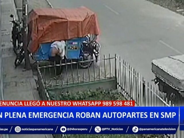 La criminalidad continúa operando pese al estado de emergencia. En el distrito de San Martín de Porres, un delincuente fue captado robando las autopartes de una mototaxi que estaba estacionada en los alrededores.