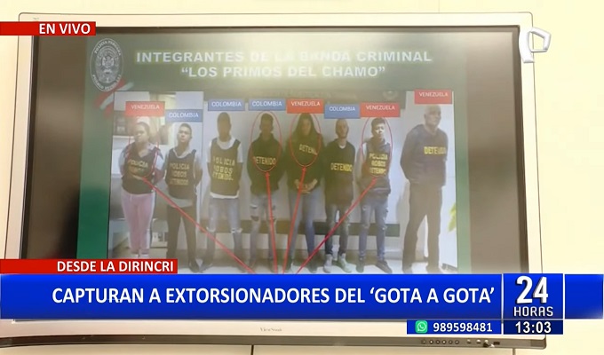 La Policía Nacional del Perú (PNP), a través de la Dirincri, capturó a ocho ciudadanos extranjeros integrantes de la banda criminal “Los Primos del Chamo”, que eran el terror de los ciudadanos a quienes extorsionaban a través de los préstamos “gota a gota”.