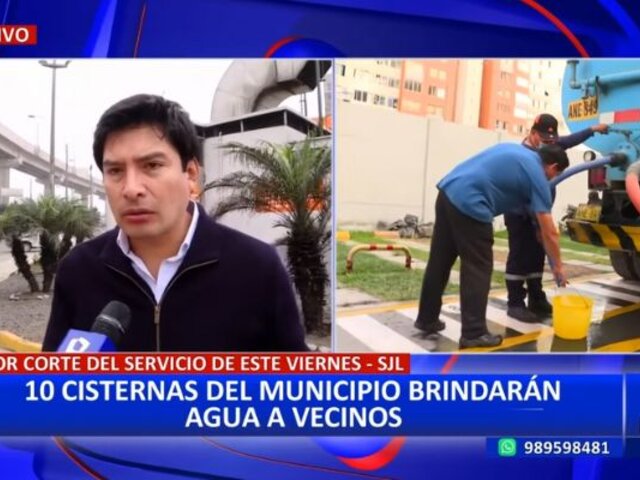 El alcalde de San Juan de Lurigancho, Jesús Maldonado, anunció que la Municipalidad del distrito pondrá a disposición de sus vecinos 10 cisternas que los abastecerán del líquido elemento durante los 4 días del corte de agua anunciado por Sedapal.