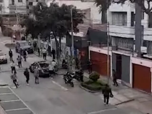 En las imágenes a las que tuvo acceso Panamericana Televisión se puede apreciar el enfrentamiento a tiros que tuvo lugar en la cuadra 5 del jirón Pietro Marchand, a la altura de la cuadra 32 de la avenida Aviación.