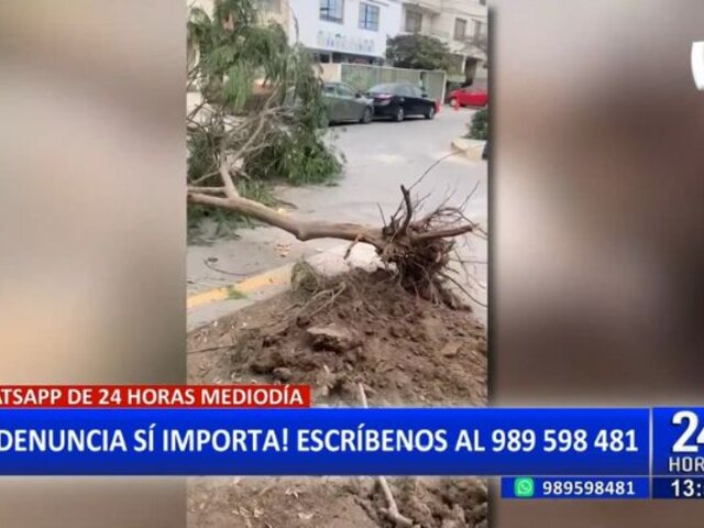 A través de nuestro WhatsApp de denuncias, vecinos de la urbanización Limatambo, en el distrito de Surquillo, reportaron la caída de un árbol en el cruce de las calles Los Paujiles con Las Gaviotas.