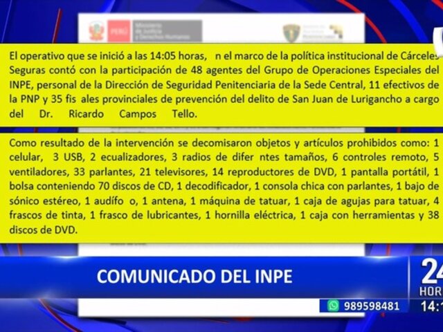 INPE emitió comunicado oficial sobre el operativo en el penal de Lurigancho