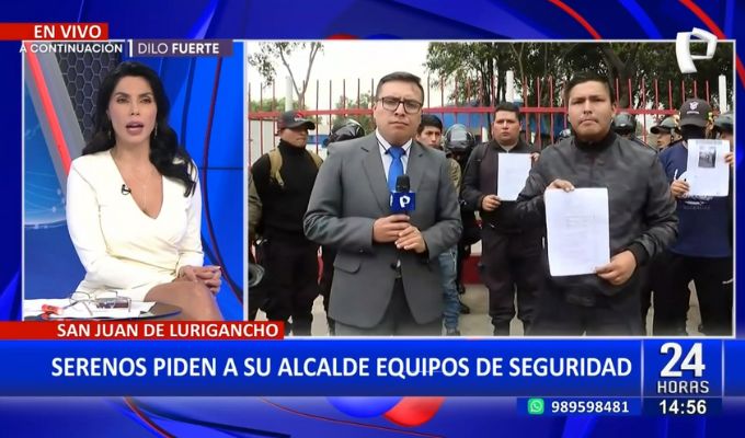 Un grupo de serenos del distrito de San Juan de Lurigancho, vienen solicitando al alcalde del sector, Jesús Maldonado, que les implemente equipos de seguridad para la lucha contra la inseguridad ciudadana, esto, tras los recientes asesinatos de dos de sus colegas.