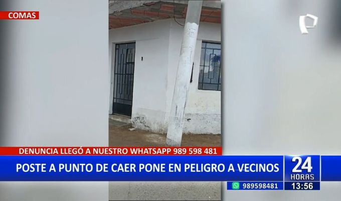 Comas: Poste a punto de caer pone en peligro a vecinos