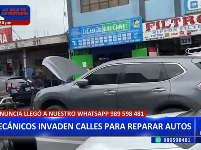A través de nuestro WhatsApp de denuncias, conductores en La Victoria denunciaron que las calles del distrito vienen siendo tomadas por mecánicos, quienes invaden la pista para reparar vehículos en plena vía pública.