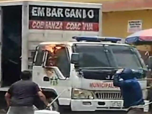 La situación escaló a niveles de alarma cuando, durante el enfrentamiento, uno de los comerciantes arrojó una bomba molotov contra un vehículo municipal, en otra toma se observa a una mujer ponchando las llantas de otra unidad.