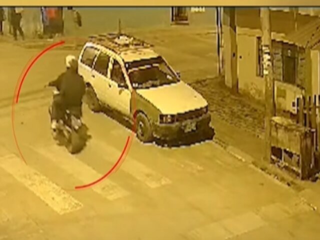 Cámaras de seguridad captaron el preciso momento en que dos avezados delincuentes a bordo de una motocicleta dispararon contra la fachada de una vivienda en el distrito de Villa María del Triunfo.