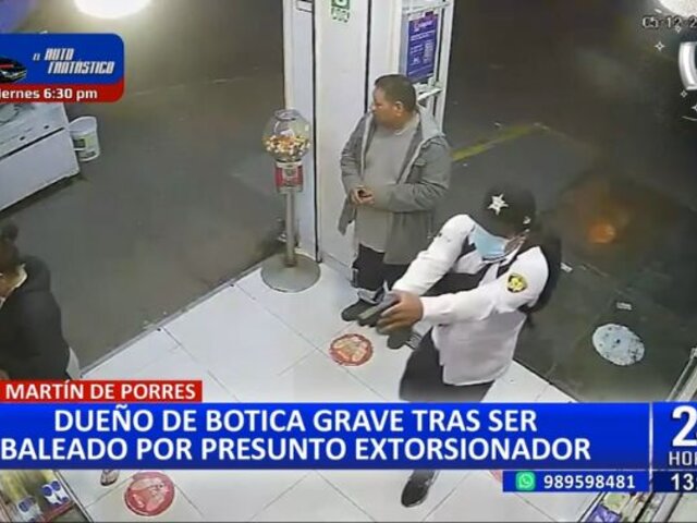 En el distrito de San Martín de Porres, el dueño de una botica se convirtió en una víctima más de la criminalidad, luego que un delincuente, quien habría estado extorsionándolo, llegó hasta su negocio para atentar contra su vida a disparos.
