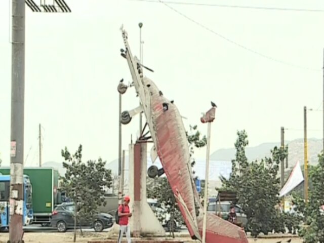 Lo que antes era un tributo a la antigua escuela de aviación de Collique hoy la estructura representa un peligro para transeúntes y vecinos de la zona.