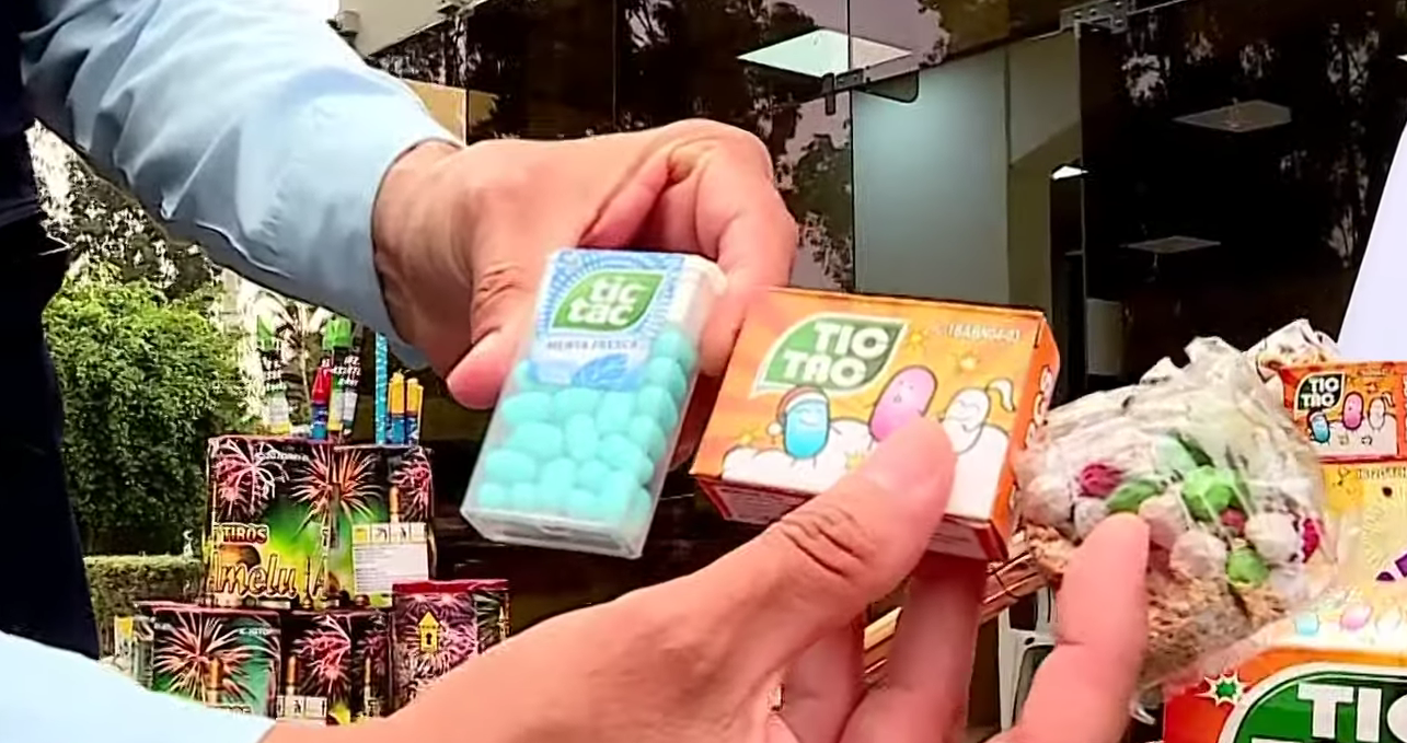 Para no despertar sospechas de los fiscalizadores, estas personas camuflaban los pirotécnicos en envoltorios de caramelos, chicles y chocolates.