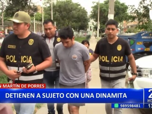 Agentes de la Policía Nacional del Perú (PNP) detuvieron a un sujeto que tenía una dinamita en su posesión. El hecho ocurrió en la avenida Próceres de Huandoy, del distrito de San Martín de Porres (SMP).