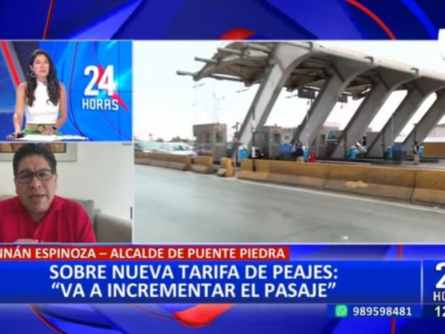 El alcalde de Puente Piedra, Rennán Espinoza, se pronunció luego que la empresa Rutas de Lima notificó a la Municipalidad de Lima y al Fondo Metropolitano de Inversiones (Invermet), su decisión de aumentar el precio de los peajes, pasando de S/6,50 a S/7,50.