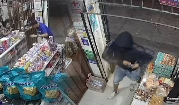 En el distrito de La Victoria, un padre de familia recibió un disparo en el rostro tras frustrar el robo en su bodega. La cámara de seguridad muestra a un hombre encapuchado ingresar al local con un arma de fuego, de inmediato apunta al dueño del negocio y lo golpean en la cabeza, segundos después se ve al señor forcejeando con el delincuente para evitar que llegue a la caja. Mientras tanto su ayudante se queda inmóvil.