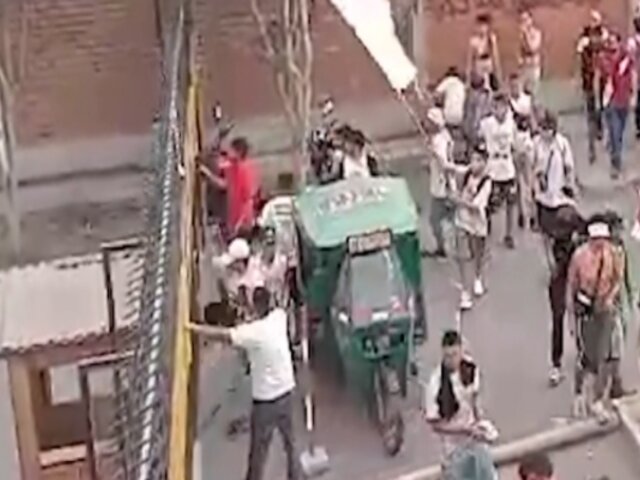 Falsos barristas de Universitario causaron daños materiales en las viviendas de los vecinos, incluso quemaron una motocicleta.