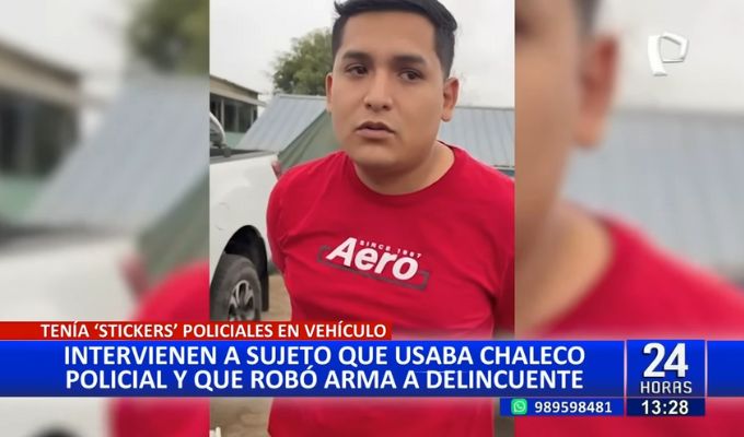 Agentes de la Policía Nacional del Perú (PNP), detuvieron a Pablo Andrés Samanamud Condori (24), un sujeto que se hacía pasar como efectivo policial utilizando un chaleco de la institución y poniendo stickers de diversas unidades policiales en su auto.