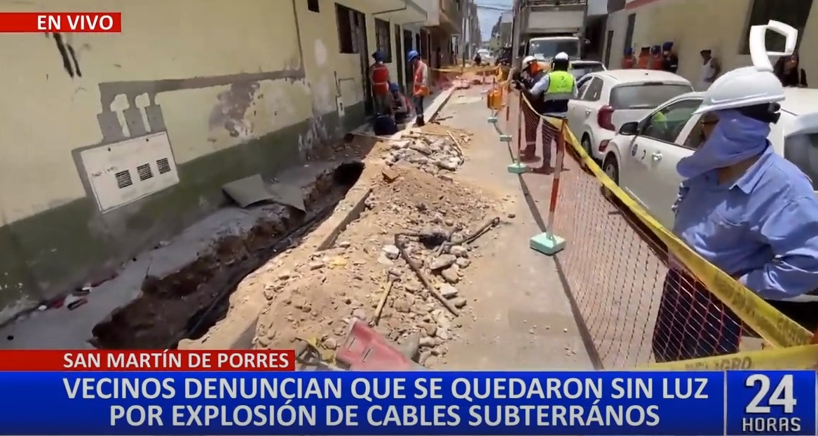 Los residentes de las cuadras 37 a la 39 de la avenida José Granda, en el distrito de San Martín de Porres (SMP), denunciaron una explosión en los cables eléctricos instalados bajo tierra, lo que resultó en la pérdida de suministro eléctrico para varios hogares.