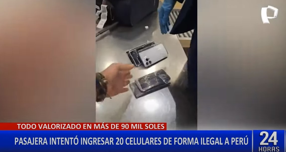 La pasajera había ocultado los dispositivos móviles en su cuerpo y fue detectada por un equipo de rayos X en el Aeropuerto Internacional Jorge Chávez.