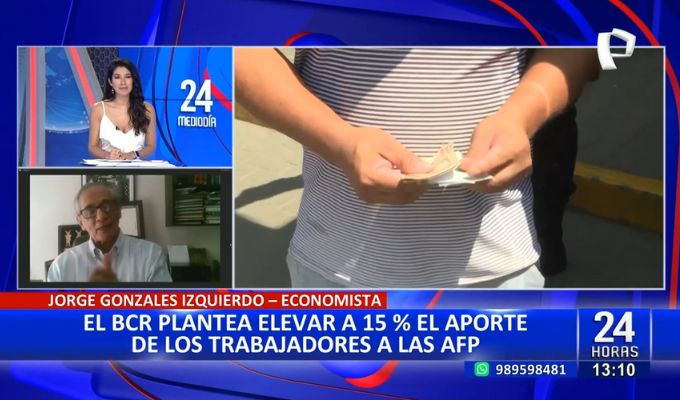 El economista Jorge González Izquierdo, se pronunció sobre la propuesta del presidente del Banco Central de Reserva del Perú (BCR), Julio Velarde, quien sugirió elevar el aporte de los trabajadores a las AFP a un 15 o 20%.