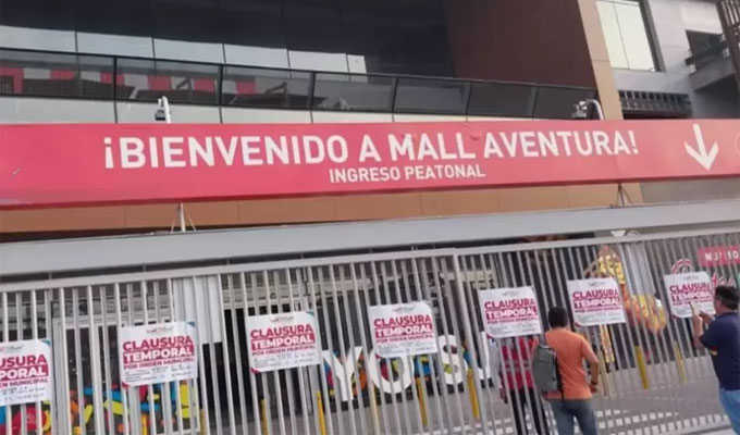 La Municipalidad de San Juan de Lurigancho clausuró anoche el Mall Aventura. Esta mañana, cientos de ciudadanos se mostraron sorprendidos por los carteles en la entrada que anunciaban el cierre temporal, que impide a los clientes realizar sus compras.